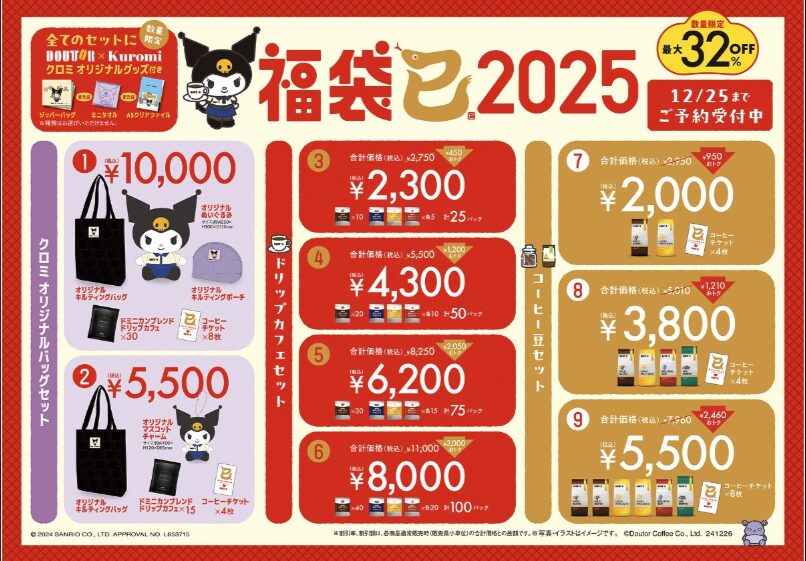 ドトールでは、2024年・2025年にかけてサンリオキャラクターコラボの福袋が販売され、話題になりました。